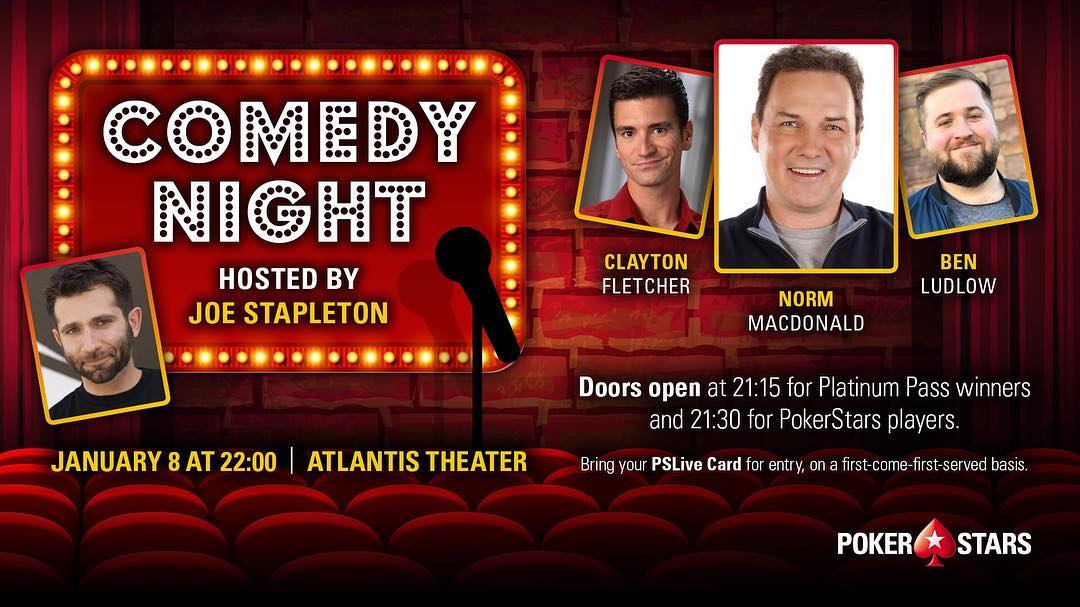 Performing at the PokerStars Caribbean Adventure Comedy Night alongside Clayton Fletcher, Joe Stapleton, and Norm Macdonald.