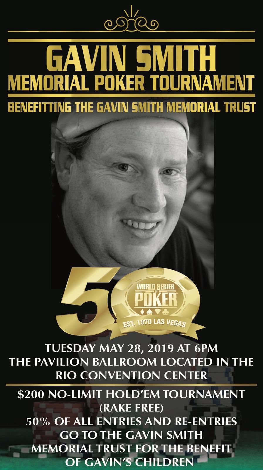 There will also be a Gavin Smith Memorial Poker Tournament at the Rio All-Suites Hotel & Casino on Tuesday, May 28, at 6 p.m. (PST). It will be a rake-free $200 buy-in with half of all entries and re-entries going directly to the Gavin Smith Memorial Trust for the benefit of Gavin Smith’s children.